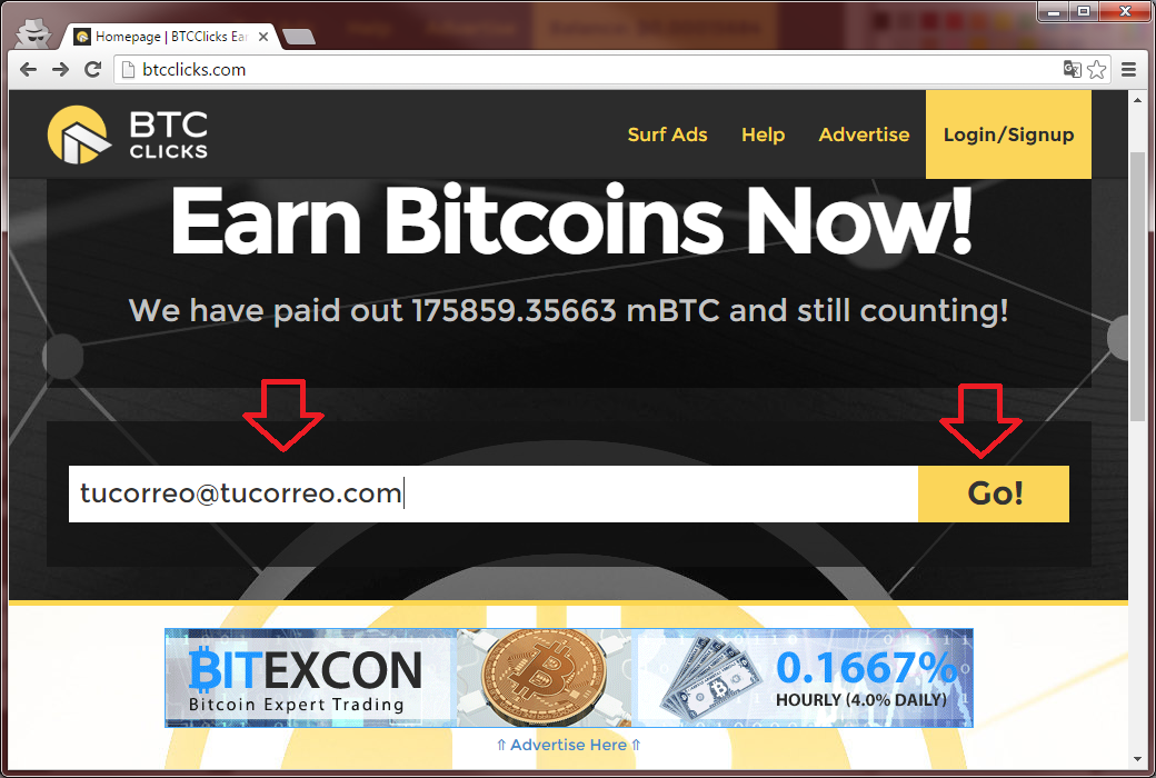 1. Escribe tu e-mail y presiona el Botón "GO" para continuar como lo indica en la imagen.